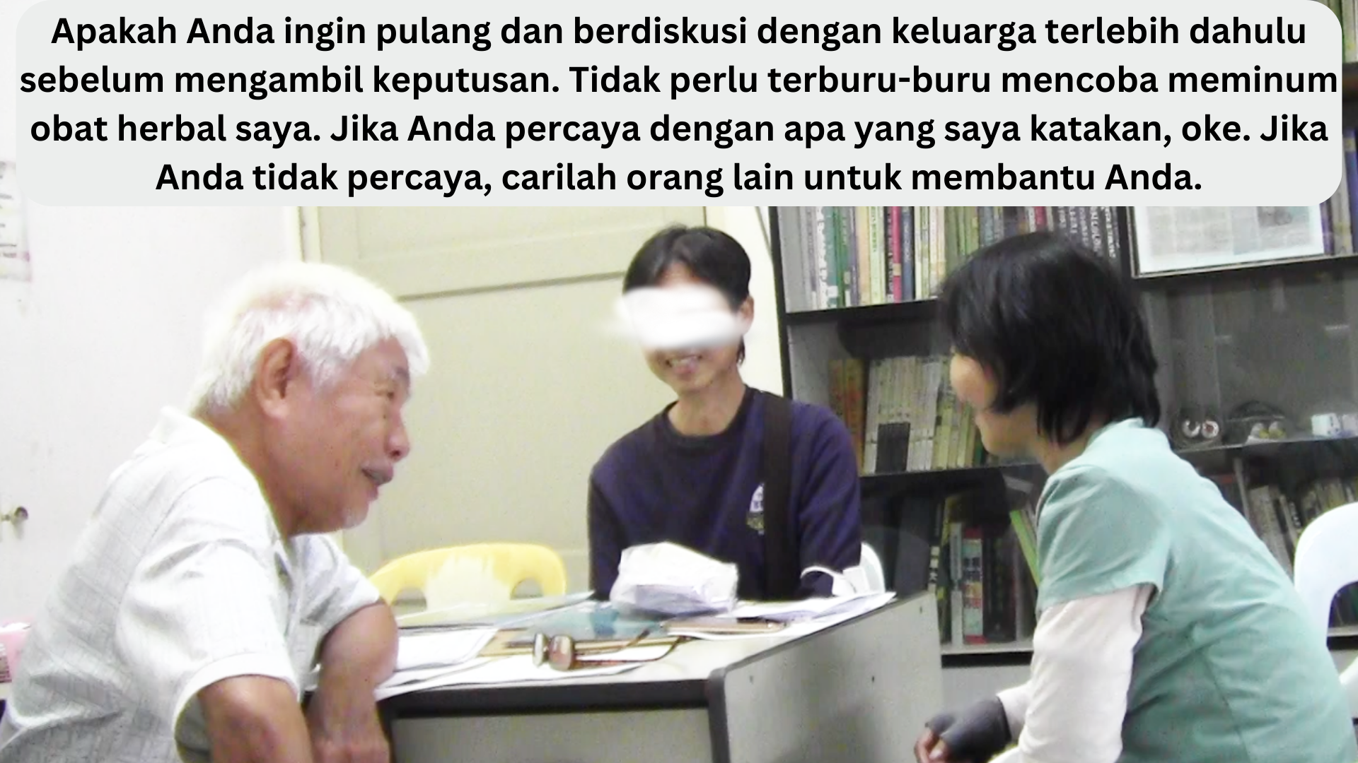 • Saya telah melakukan yang terbaik untuk Anda – selama 12 tahun terakhir – dan sekarang, saya tidak mempunyai obat herbal lain lagi untuk mengatasi masalah Anda.