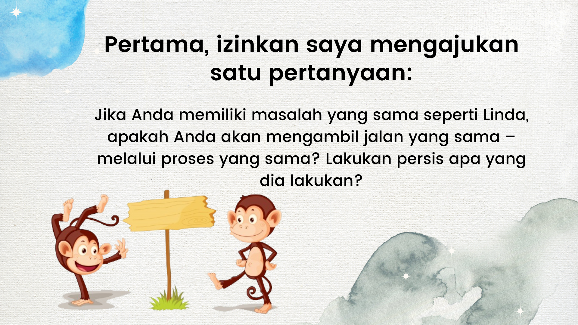 Untuk pertanyaan-pertanyaan berikut ini, saya tidak akan menjawab pertanyaan yang diajukan melainkan mengutip apa yang ditulis Mark Sloan dalam bukunya.