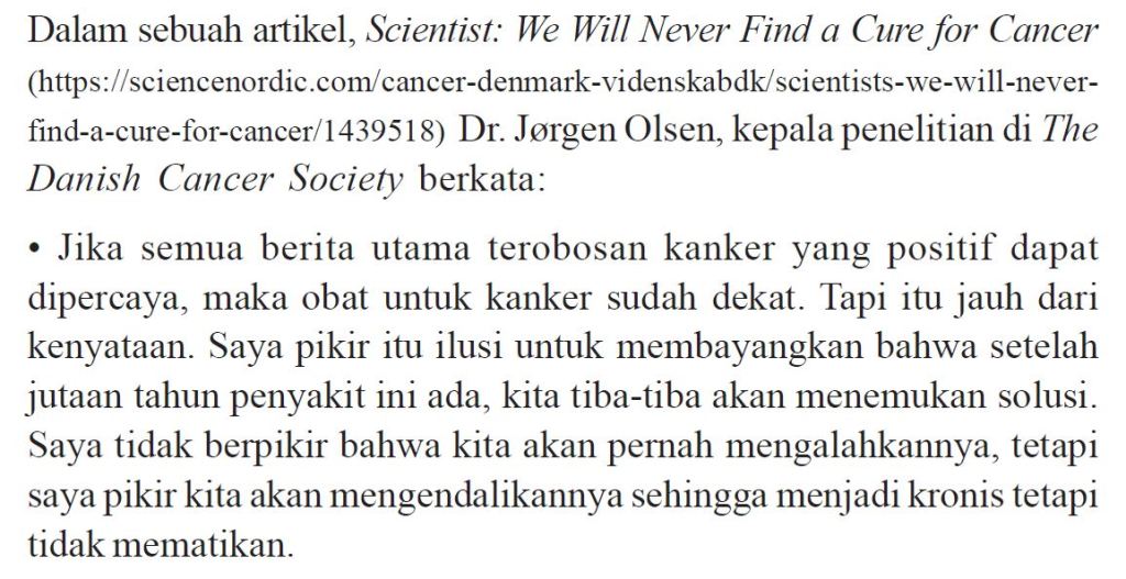4. Apa realitas pengobatan medis untuk kanker saat ini?