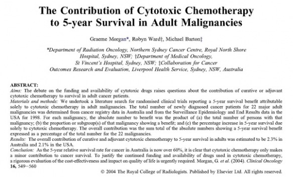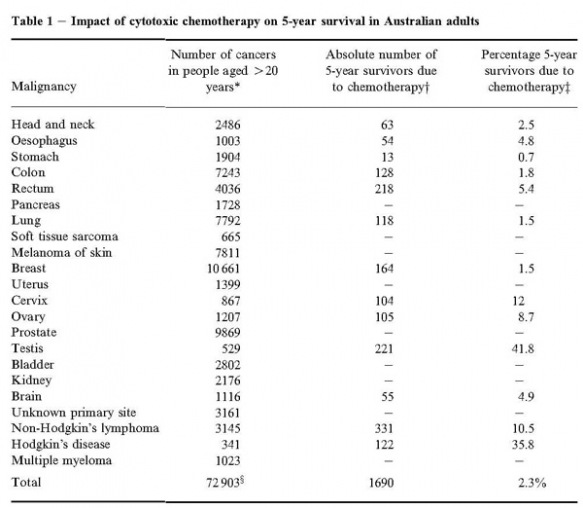 Kemoterapi terbukti bermanfaat hanya untuk margin kecil (13% sampai 17%). Memang, dari sudut pandang akademis, hasilnya secara statistik signifikan. Hal ini akan menyenangkan para ahli statistik dan ilmuan, tetapi saya tidak yakin jika ini menyenangkan pasien-pasien kanker. Saya yakin hal ini bukanlah apa yang para pasien cari (khususnya mereka yang berasal dari negara tertinggal). Mereka mencari penyembuhan NYATA. Jika tidak mungkin, setidaknya mereka mengharapkan kesempatan yang jauh lebih besar untuk mencapainya. Saya bertanya-tanya apakah manfaat kurang dari 20% itu cukup baik?