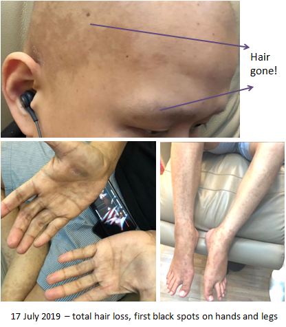 | 37 | 12-Aug-19 | Very tired, almost black out, skin getting worse, water retention | |