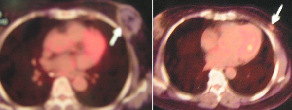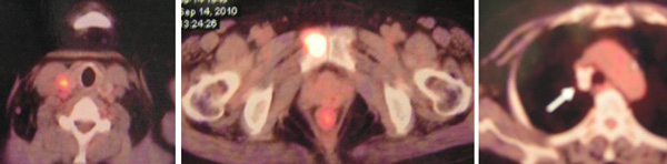 Sebuah PET-CT scan pada 23 Maret 2009 menunjukkan suatu kondisi kanker mulut rahim / cervix yang sudah lanjut dengan penyebaran ke arah rahim mencakup rahim dan bagian atas dari vagina. Terdapat pula banyak tanda-tanda adanya masa pada kelenjar getah bening yang tersebar didaerah sebelah kiri iliac, aorto-caval, recto-caval dan bilateral paraaortic , ini menggambarkan suatu penyebaran kanker ( metastasis ). Tidak terdapat tanda-tanda / bukti dari suatu metastasis didaerah peritoneal ataupun hati.