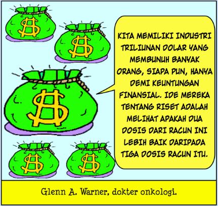 Seorang pasien yang menderita kanker payudara melakukan prosedur diagnostik di atas di sebuah rumah sakit swasta di Penang. Harganya RM 10.817. Perhatikan, ini sebelum perawatan apa pun dilakukan.